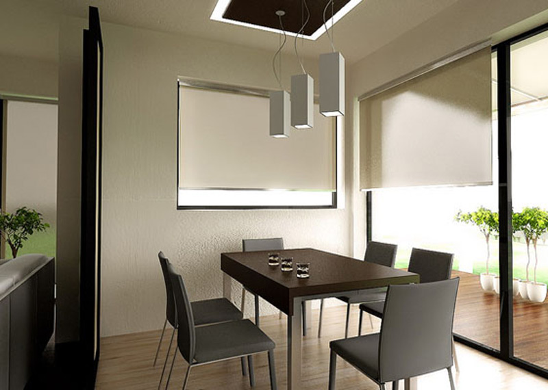 Diningul comunica direct cu exteriorul printr-o terasa. Acest lucru avantajeaza intregul parter oferind interiorului atat o priveliste placuta asupra gradinii cat si lumina naturala din abundenta. Masa si scaunele din aceasta zona imbraca acelasi design ca cel al pieselor din living.