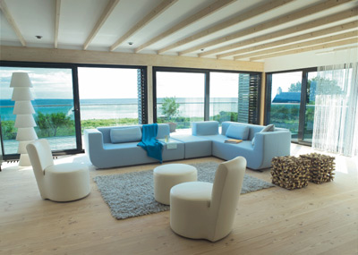 Stiu! Inspira lux, caldura, optimism si voie buna! Cauza sa fie ferestrele mari, culoarea canapelei, fotoliile sau pardoseala? Este de observat lipsa obiectelor decorative. Insa, intr-o astfel de amenajare spectaculoasa, nici nu isi mai au rostul. Livingul din imagine a fost amenajat pentru confort si relaxare la superlativ! CARRE HOME INTERIOR