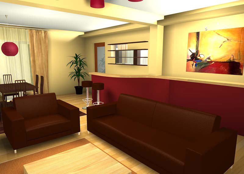Pentru ca stilul minimalist poate lasa senzatia de sobrietate unui interior, s-au decorat peretii locuintei cu tablouri mari (in nuante vesele). Pentru ferestre s-au ales perdele vaporoase, transparente, cu draperii in nuante calde. La eleganta atmosferei din interior contribuie si corpurile de iluminat ale casei. Delicate ca design si intr-o nuanta aprinsa acestea redau un plus de viata locuintei.