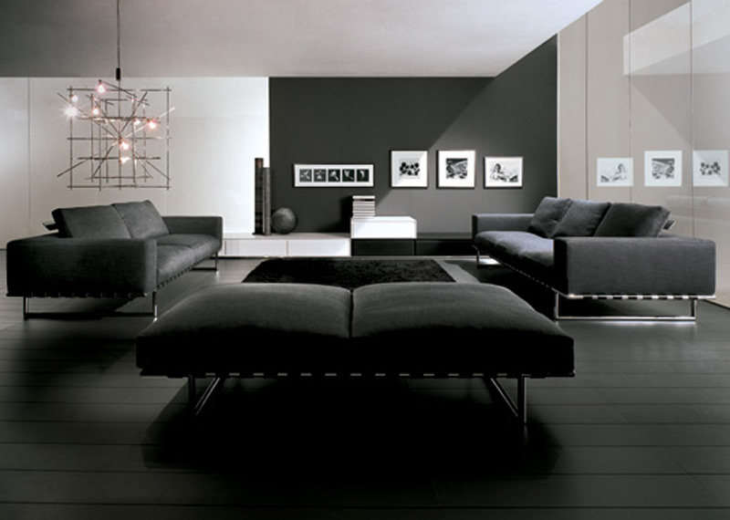 In living au fost amplasate piese de mobilier foarte moderne, cu linii drepte si joase. Pentru mobilierul de sezut au fost alese doua canapele de mari dimensiuni si un taburet dublu, cu cadru metalic, structura poliuretanica si tapiserie din material textil. Mobilierul livingului este compus din dulapuri joase, tapisate cu piele naturala alba si neagra. Decorarea livingului a fost realizata prin amplasarea unui covor negru, din par natural, si a unor tablouri decorative.