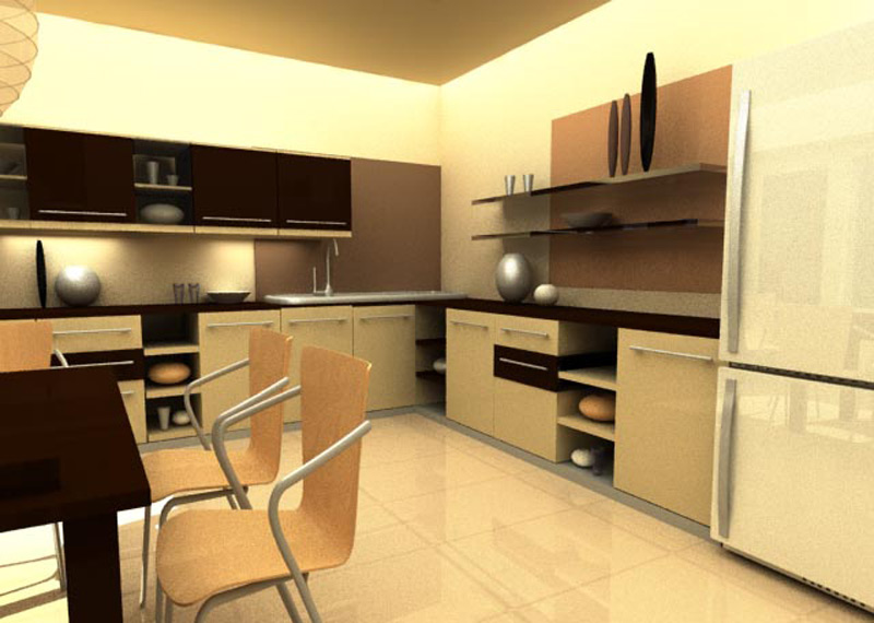 Atunci cand in bucatarie iti permite spatiul poti merge pe acelasi concept de joc de culoare. In cazul de fata fiecare zona prezinta ceva nou. Chiar si obiectele decorative sunt elegante si alese in culorile cele mai potrivite. Blatul de lucru a fost dispus armonios, pe doua laturi ale incaperii si cuprinde tot necesarul specific unei bucatarii moderne si functionala.