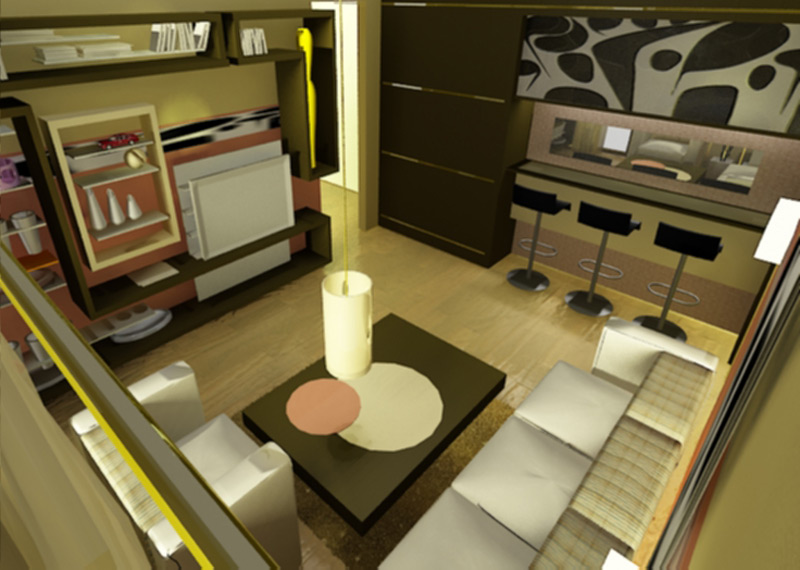 Acest model de living exprima dinamism si pofta de viata. Nuantele indraznete au rolul de a echilibra dinamismul jocului geometric. Numeroase polite si etajere, in diverse culori, piese de mobilier joase, in stil minimalist. Amenajarea este ideala atat pentru un apartament de bloc cat si pentru o casa. Nimic nu este pozitionat la intamplare ci totul contribuie la imaginea tinereasca, specifica stilului de viata care ii caracterizeaza pe proprietari. Knox Design