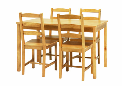 Set masa si patru scaune, din lemn masiv de pin cu aspect antichizat. Dimensiuni masa: 118 x 74 cm, inaltime 74 cm. Dimensiuni scaune: 41 x 47 cm, inaltime 90 cm. Pret 349 RON/set IKEA