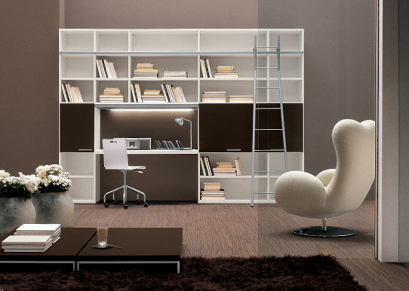 Biblioteca cu birou incorporat. Foarte eleganta si cu design modern. Aceasta piesa este foarte usor de amplasat si cuprinde suficiente rafturi pentru numeroase accesorii. Fotoliul este si el foarte comod si poate fi pozitionat usor in orice colt al camerei. INTERIOR STORE