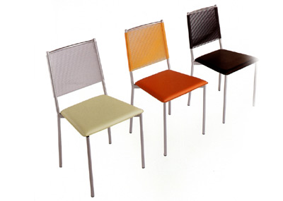 Scaun cu structura metalica vopsita gri, sezut tapitat cu piele ecologica si spatar din PVC, finisaj portocaliu. MOBEXPERT