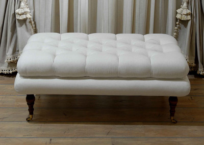 Tapitat si capitonat, se poate realiza la comanda cu tipul de material (tesatura sau piele) si/sau dimensiunile alese de client. Pouf-ul poate fi realizat si in forma rotunda. Picioarele sunt din lemn strunjit de fag. Pret 1969 RON MARGE HOME COLLECTIONS