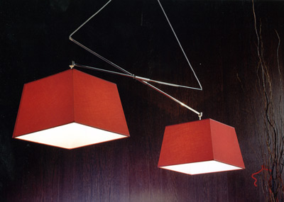 Lustra cu structura metalica si abajur din material textil disponibil in diverse nuante, dimensiuni 123-200L x 50H cm. MOBEXPERT