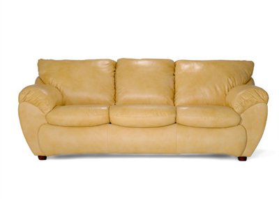 Canapea cu 3 locuri, extensibila, perne spatar cu insertie fibra siliconizata, care asigura un grad sporit de confort. Dimensiuni 2100x890/2270x880 mm. Realizata din piele Madras in doua tonuri. Pret 2.750 lei. ELVILA