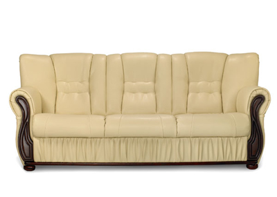 Canapea in structura fixa, prevazuta cu aplice din lemn masiv de fag, dimensiuni 1970x950x900 mm, realizata din piele ecologica. Pret canapea 970 lei. ELVILA