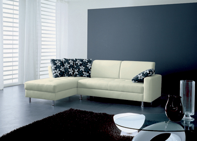 Canapea colt cu tapiterie din ecopiele si perne incluse, dimensiuni 250Lx150Ax80H cm, finsaj alb. Se poate comanda in varianta sezlong dreapta sau stanga. MOBEXPERT