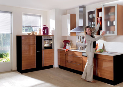 Varianta din imagine valorifica foarte bine un spatiu mic. S-au folosit corpuri supendate si inchise cu usi din sticla. Decorul si alternanta gol-plin inscrie modelul prezentat in tendintele acestui an. Nuantele alese ofera un contrast cald care scoate in evidenta designul si functionalitatea modelului in cauza. Poti opta pentru o astfel de mobila fie intr-o bucatarie deschisa la casa, fie intr-un apartament de bloc.