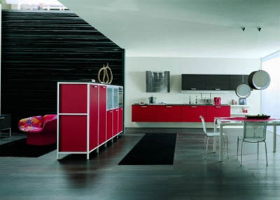 O astfel de bucatarie intalnim doar in locuinte foarte spatioase si moderne. Daca optezi pentru acest contrast si daca bucataria se prezinta deschis (exact ca in imaginea prezentata) trebuie sa decorezi incaperile invecinate (living, dinning) in aceleasi nuante. Cu alte cuvinte, amenajarea unei bucatarii moderne si in nuante indraznete, cere o atentie sporita din partea proprietarului!
