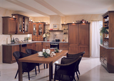 Finisajele calde, zugraveala peretilor si designul corpurilor de mobilier iti lasa o senzatie de buna dispozitie si optimism. Seamana cu bucataria din casa de vacanta de la munte. Ideea scaunelor impletite se incadreaza perfect in decor. Cu o astfel de bucatarie nu simti lipsa unui loc de servit masa special amenajat deoarece iti doresti sa stai cat mai mult timp aici!