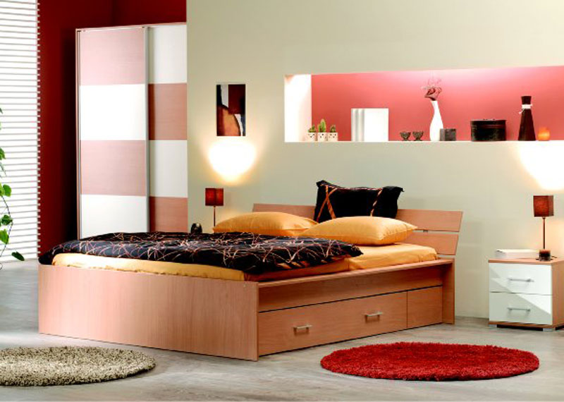 Pat cu sertar pentru asternut si noptiere, dulap cu 2 usi glisante; ptional patul poate fi prevazut cu sertar pentru asternut. Dimensiuni: Dulap KL 2K: L1800xA654xH1986mm Pat dublu cu sertar: L1810xA2120xH750mm Noptiera NO: L448xA334xH440mm Materiale folosite: PAL melaminat Culori: fag Preturi: Dulap KL 2K: 1220 lei Pat dublu cu sertar: 740 lei Noptiera NO: 175 lei ELVILA