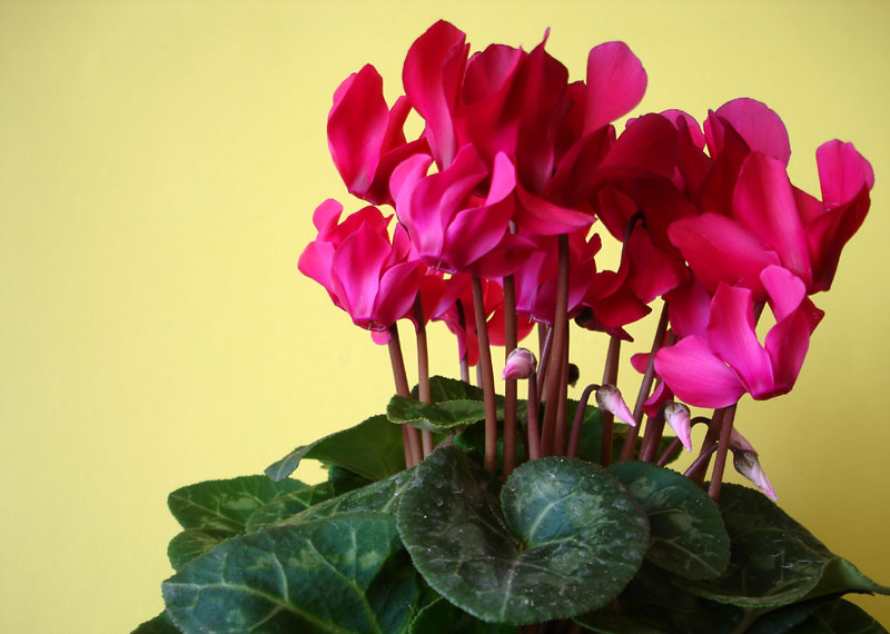 Parti otravitoare: bulbi, rizomi. Rizomii tuberculari sunt amari si se gasesc sub pamant asa ca probabilitatea ca animalele sau copiii sa le inghita este destul de scazuta. Cyclamen este o planta perena care se prezinta ca o tufa, cu frunze de culoare verzi-albicioase, rasucite si cu flori deosebit de frumoase, albe, rosii, violet, sustinute de pedunculii florali mai inalti decat tufa. Aceasta planta prefera incaperi luminoase, cu temperatura moderata si umiditate ridicata in atmosfera.