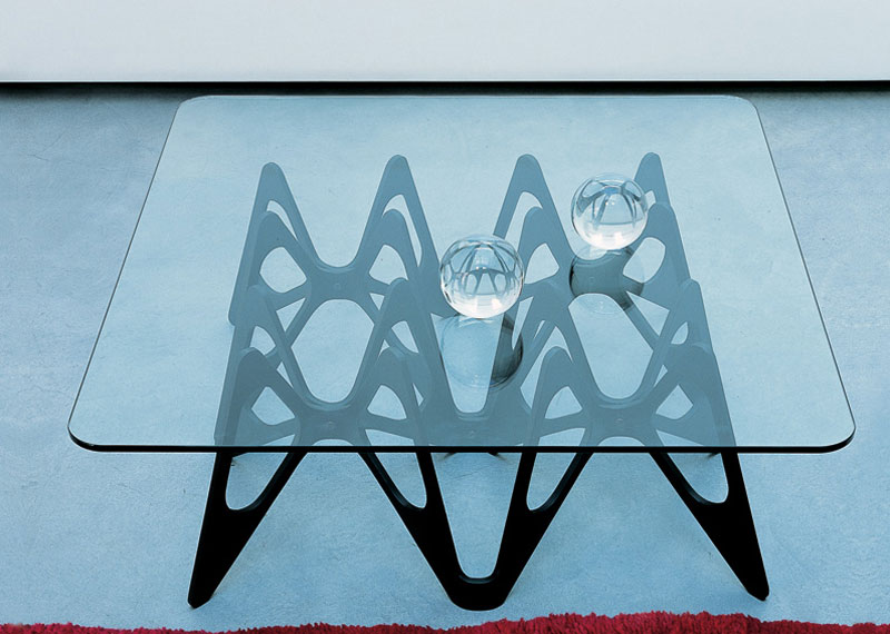 Masuta de cafea cu structura din lemn stratificat curbat, furniruit cu stejar natur wenge, lacuit alb sau negru, blat din sticla securizata de 10 mm grosime. Dimensiuni : se prezinta in 2 variante: patrata 90 x 90 cm sau dreptunghiulara 90 x 120 cm Design: Alexander Taylor, 2006 (Good Design Award, 2006) Pret: 1379 (cea mica)/ 1822 (cea mare) EUR, fara TVA