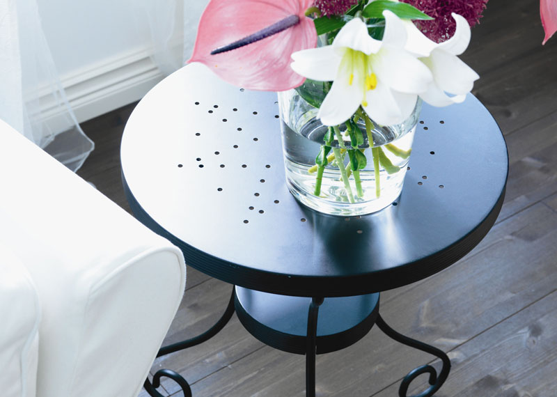 Masa 50 cm diametru, 66 cm inaltime, din otel, negru-maro Pret: 65 lei