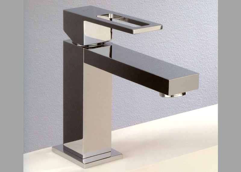 Baterie Irta, design Noken, cu monocomanda, disponibila în varianta de lavoar, de perete sau de pardoseala si doua variante cromatice: inox, negru.