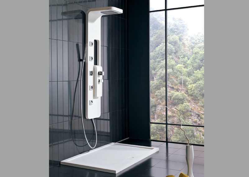 Coloana de dus A-legro, din rasini minerale, dotata cu:-hidromasaj vertical cu 5 jeturi ajustabile;-baterie termostatica; selector de functii si reglare a debitului; dus fix, cu efect de ploaie 200 mm; dus mobil; Dimensiuni: 150 x 30 cm.
