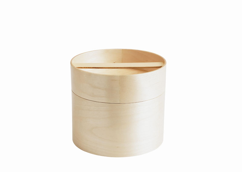 Cutie depozitare, 17 cm diametru, 15 cm inaltime din furnir de mesteacan.