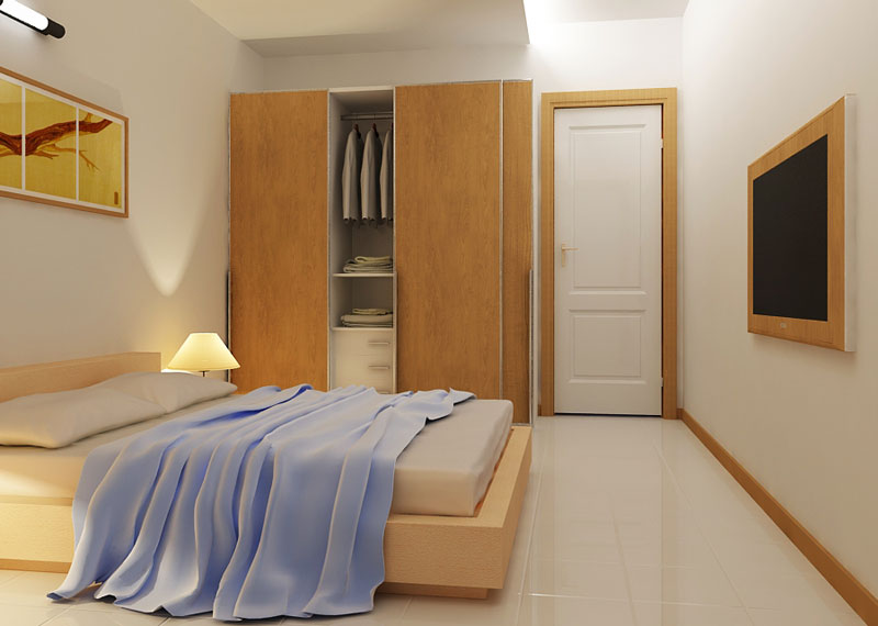 Reluand trasaturile dormitorului anterior, prin amenajarea de fata, designer-ul dovedeste inca odata ca o astfel de incapere, atunci cand este amenajata in stil minimalist ofera exact ceea ce trebuie, si anume, relaxare. De data aceasta spatiul este de dimensiuni mai restranse, insa imaginea de ansamblu nu este deloc aglomerata. In general, se considera ca pardoseala unui dormitor trebuie sa fie din lemn, insa Vu Khoi propune placi fine si lucioase de gresie cu scopul de a mari spatiul la nivel vizual.