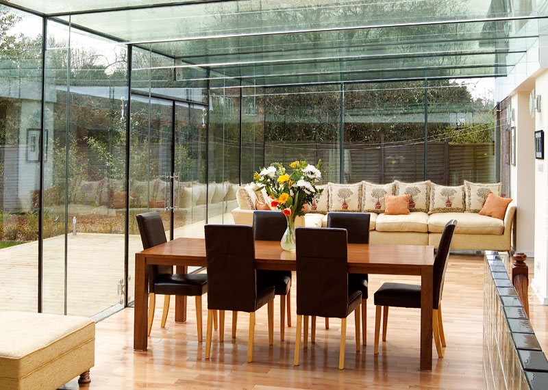 Aripa noua, realizata in intregime din sticla, face tranzitia din spatiul interior catre cel exterior, unind camerele interioare si permitand spatiilor sa se deschida prin intermediul structurii de sticla, catre imaginea gradinii.