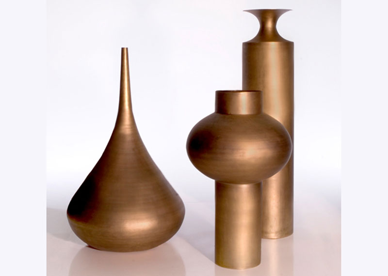 Descriere: vase din alama nelustruita, lucrate manual; la exterior finisate satinat.