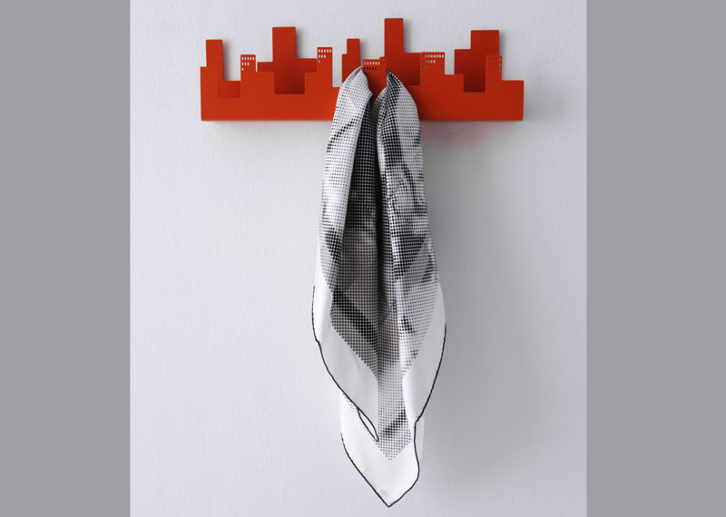 Descriere: cuier din metal lacuit negru, alb, argintiu(aluminiu) si portocaliu.