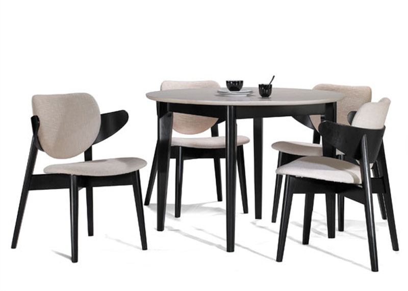 Materiale folosite: Lemn masiv de fag, elemente mulate din furnir, sezut si spatar tapitate cu stofa.