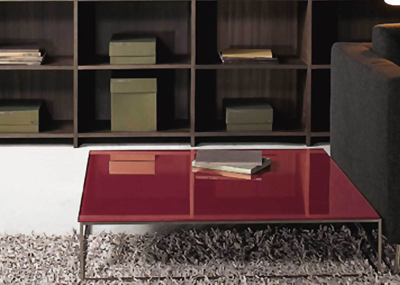 Blat sticla; rama inox, Culoare:Rosu/ Negru; Dimensiuni: L100xA100xH21 cm.