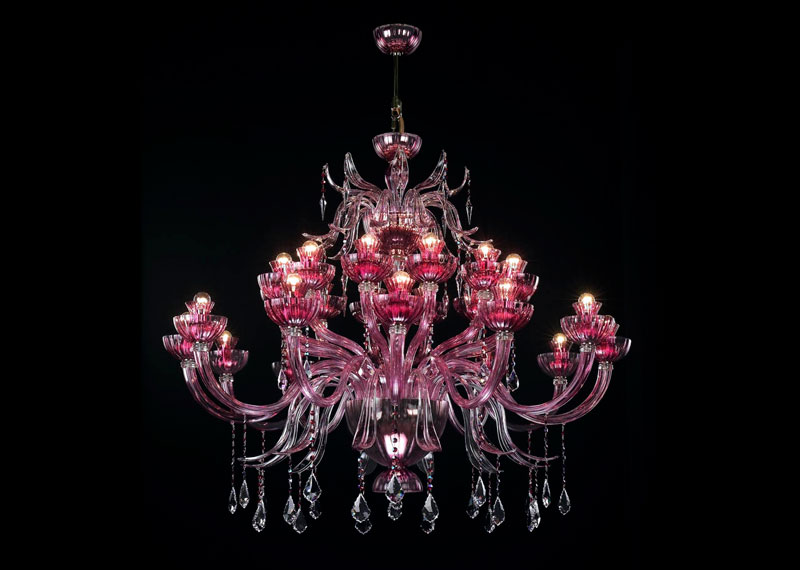 Realizat dintr-o combinatie unica de sticla de Murano, crystale Swarovski, metal placat cu crom si aur.