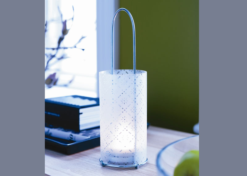 Suport pt lumanare in cupa metalica, din sticla, cu suport pentru lumanare din otel zincat.