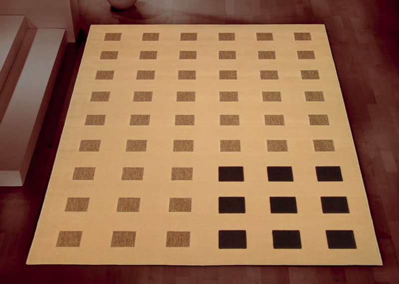 Covor cu imprimeu geometric, realizat in culori de pamant.