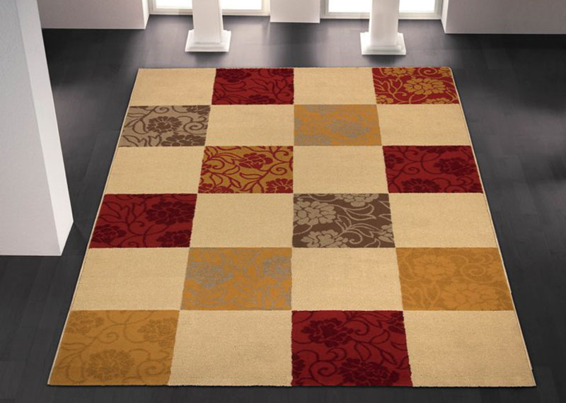 Un covor modern, ce imbina perfect geometricul cu floralul; realizat in culori calde si de pamant.
