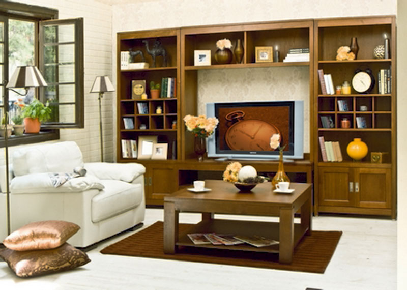 Living realizat din lemn masiv de stejar si Pal furniruit cu furnir natural, finisaj maro.