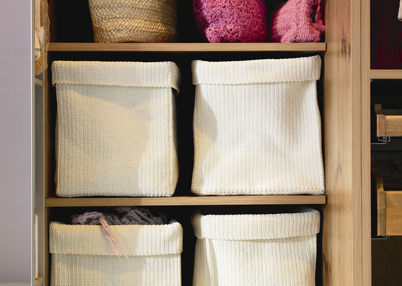 Se potrivesc in etajera cu 2 rafturi KOMPLEMENT. Toate trei incap intr-un cadru de dulap de haine cu latimea de 100 cm.