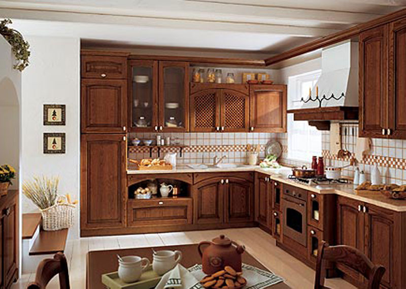 Bucatarie Clasica, realizata din placi de lemn clasa E1, cu finisaje nuc.