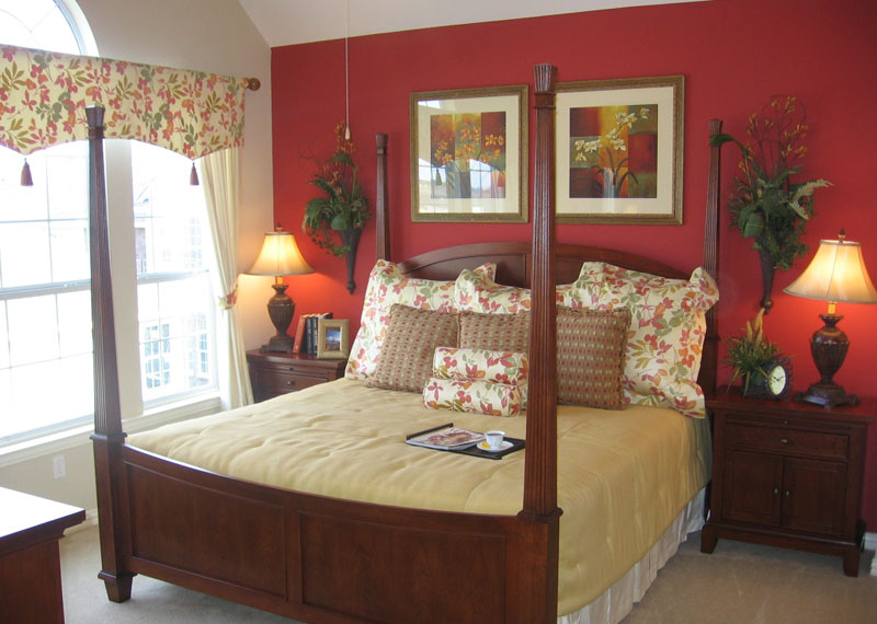 Peretele de accentuare zugravit in rosu ofera eleganta spatiului, trimitandu-ne cu gandul la apartamentele frantuzesti. Aranjamentele florale, veiozele clasice si mobilierul din lemn masiv reusesc sa formeze un ambient extrem de rafinat.
