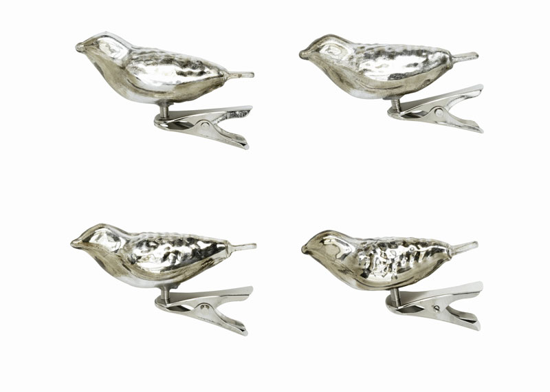 Decoratiune pasare, din sticla, cu aspect antichizat.