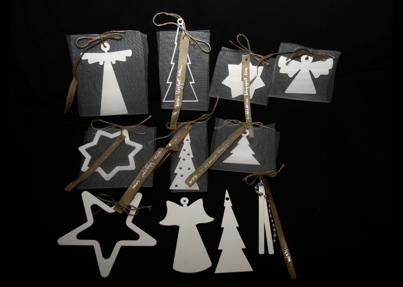 Descriere: Decoratiuni de brad realizate din forex, ambalaj hand made.