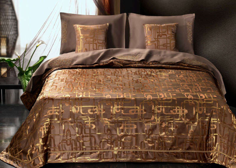 Lenjerie de pat compusa din: cuvertura decorativa realizata din Jacquard si Bumbac si doua fete de perna.