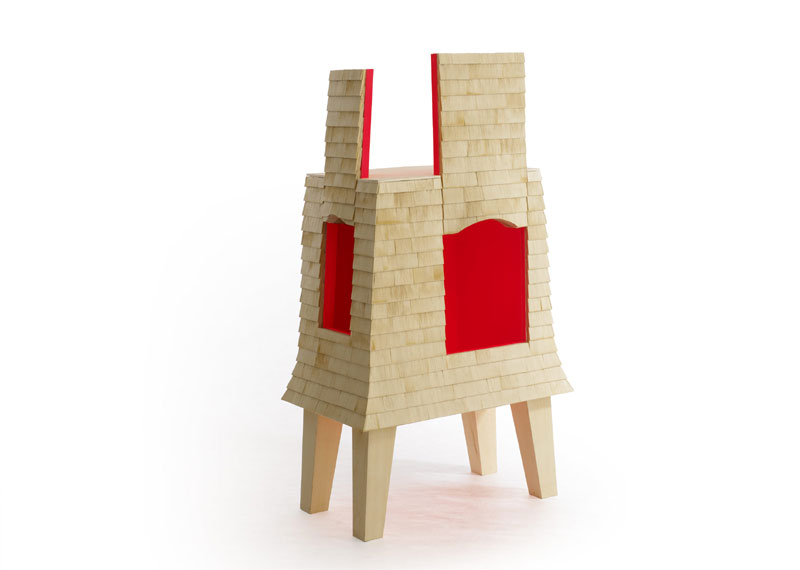Diferitele straturi de lemn ale acestei piese de mobilier simbolizeaza varietatea Alpilor ce asteapta a fi explorata. Golurile inguste permit spectatorului sa arunce o privire in spatiul sau intern, abia perceptibil in spatele fatadei acoperite cu sindrila.