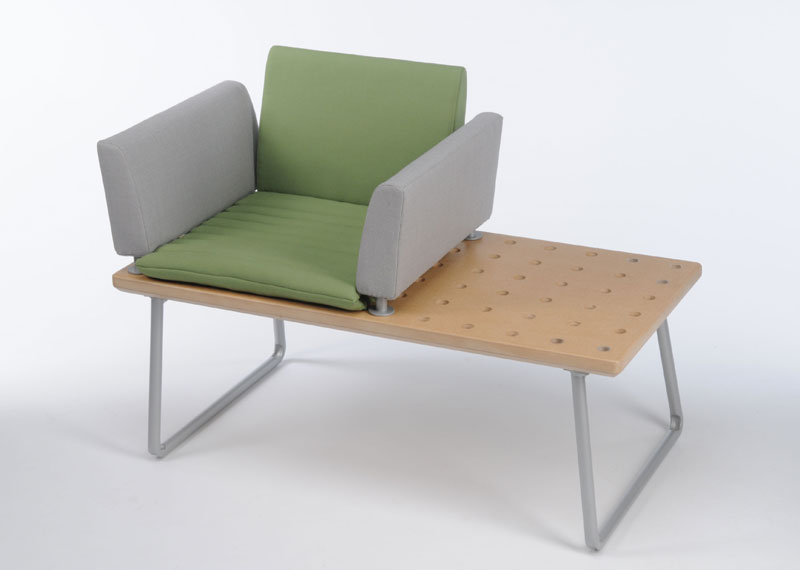 Creata pentru cei ce traiesc singuri, Banca Modulara poate fi reconfigurata prin mutarea elementelor tapitate ce se fixeaza in gaurile suportului si prin transformarea saltelei. Astfel se obtine un produs 3 in 1.