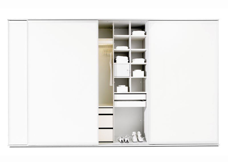 Dressing cu usa culisanta, sticla alba, fara echipament interior.