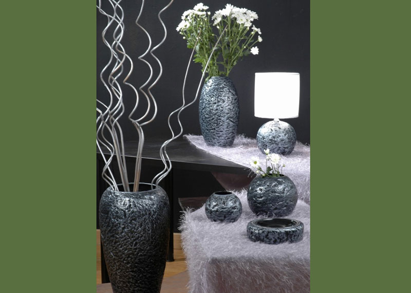O colectie unica de decoratiuni interioare ce cuprinde: vaze decorative mari, boluri decorative, veioza cu abajur alb si scrumiera.