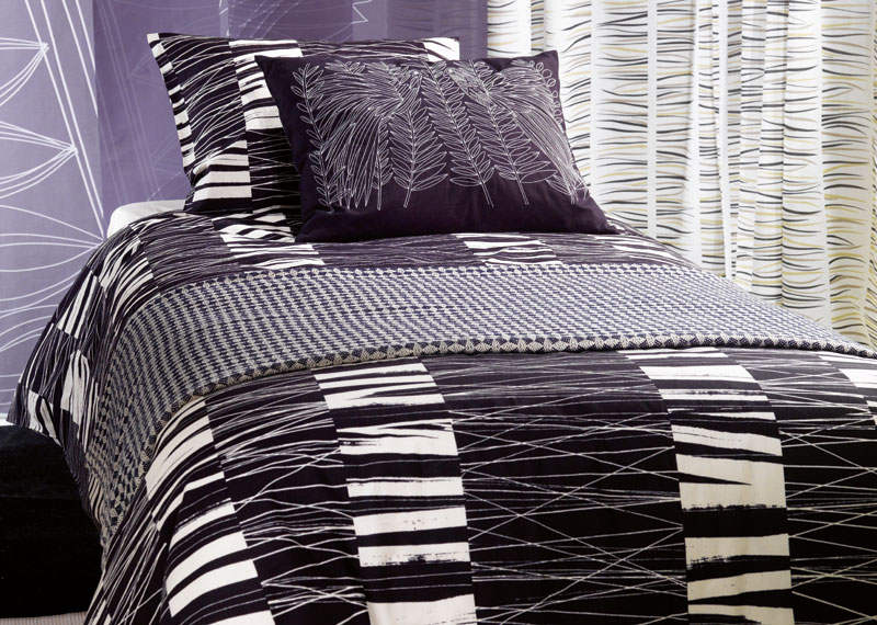 Husa pilota (200x200 cm) si 2 fete perna (50x60 cm), negru/alb, 100% bumbac.