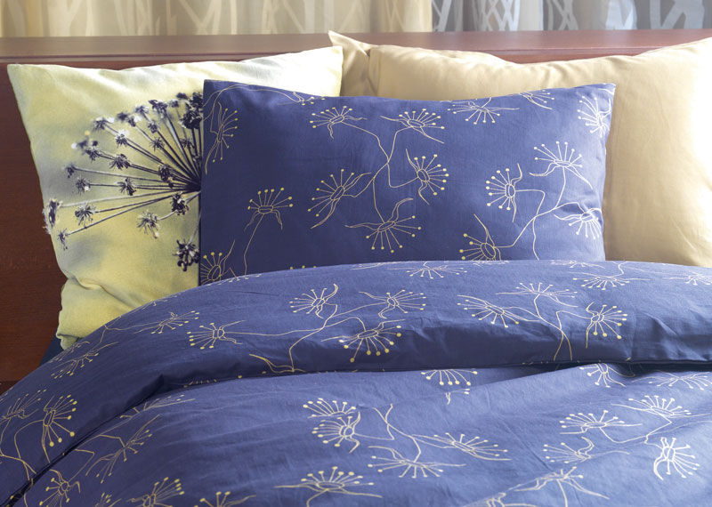 Husa pilota (200x200) si 2 fete perna (50x60 cm), albastru inchis, 100% bumbac.