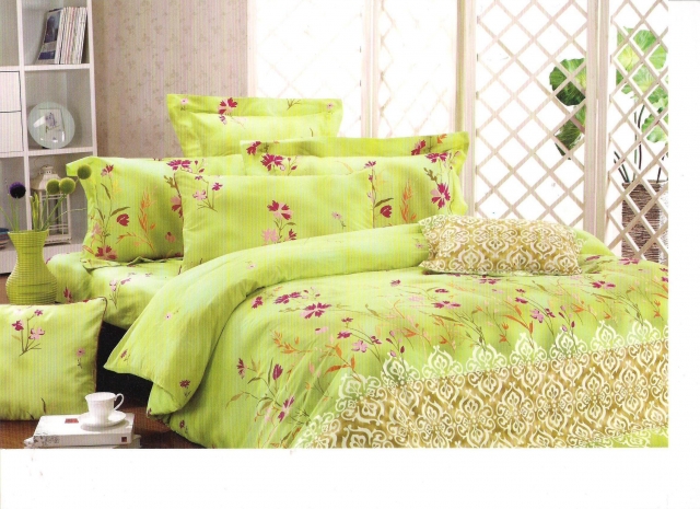 Lenjerie de pat din bumbac satinat vernil cu flori.Alcatuita din: