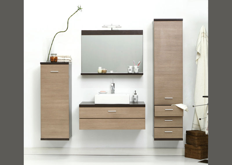 Mobilier modular de baie Matino, realizat din panouri aglomerate din lemn melaminat.