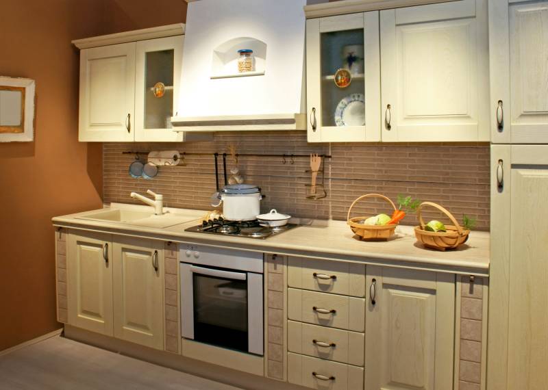 Ustensilele din lemn, cosurile impletite, bolurile si farfuriile de ceramica sunt cateva dintre elementele unui astfel de spatiu, care prin expunere devin obiecte decorative de mare efect.